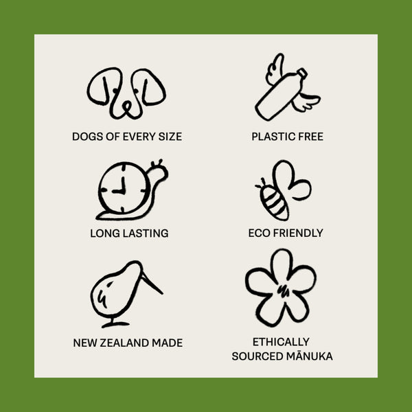 Ethically sourced Mānuka wood is slow dried, debarked, then treated with New Zealand flaxseed oil. Each Bonno chew is hand finished to a smooth texture, ready for it to be destroyed.