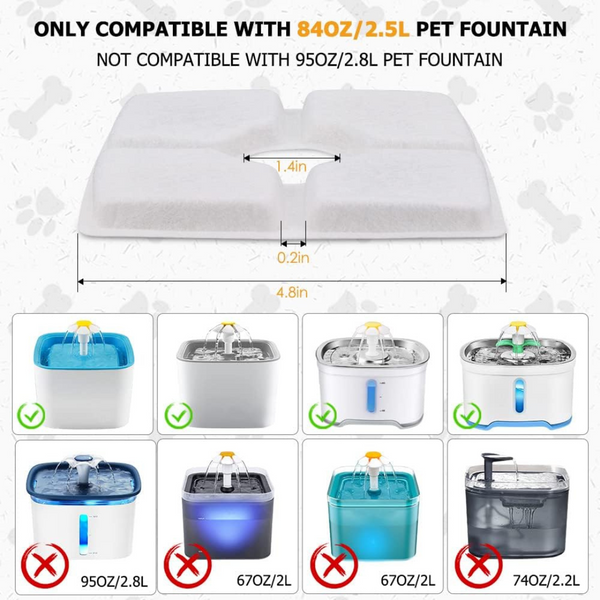 Each cat water filter measures 12.8cm x 12.8.cm, so be sure to check your fountain’s size for compatibility.