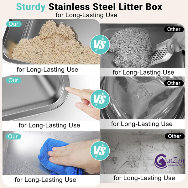- High-Sided Design: This XL stainless steel litter box features high walls to prevent litter scatter and keep odors contained.