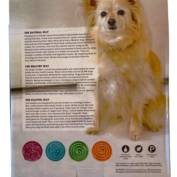 MADE WITH FOOD SAFE MATERIALS: Fun Feeder Slo Bowl, slow feeder dog bowls are made to hold in both fun and food as your dog forages through the fun patterns. Bowls are BPA, PVC, and phthalate free.