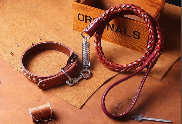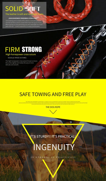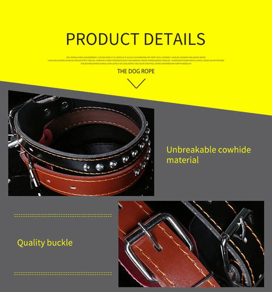 Adjustable Dog Leather Collar with Anti Pulling Training Leash for Medium and Large Dogs