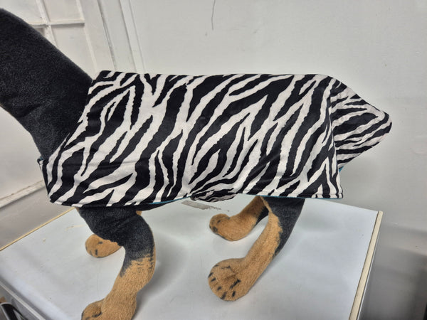 Our Safari Stripe Jacket is a velour zebra pattern and lined with teal fleece.