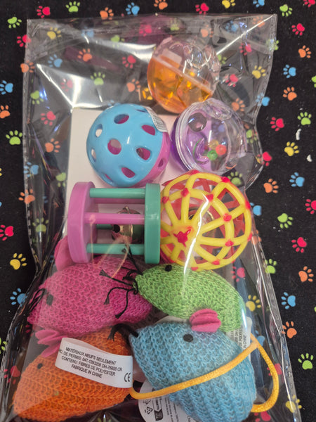 Contains 9 toys to keep your fur baby entertained.